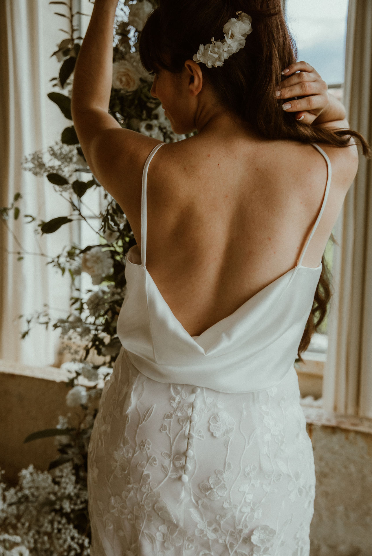 Bloom m'a été inspirée par l'ambiance romantique et sensuelle du jardin anglais. Et plus particulièrement, ce moment où dans la lumière de l'aurore, toutes les essences s'ouvrent et s'épanouissent. Ainsi j'ai imaginé des modèles où les motifs floraux se mêlent aux tulles finement brodés de perles et sequins. Des bustiers qui soulignent la taille et dévoilent délicatement le épaules. De légers tulles en drapés et satin duchesse pour des jupes au scandaleux volumes.